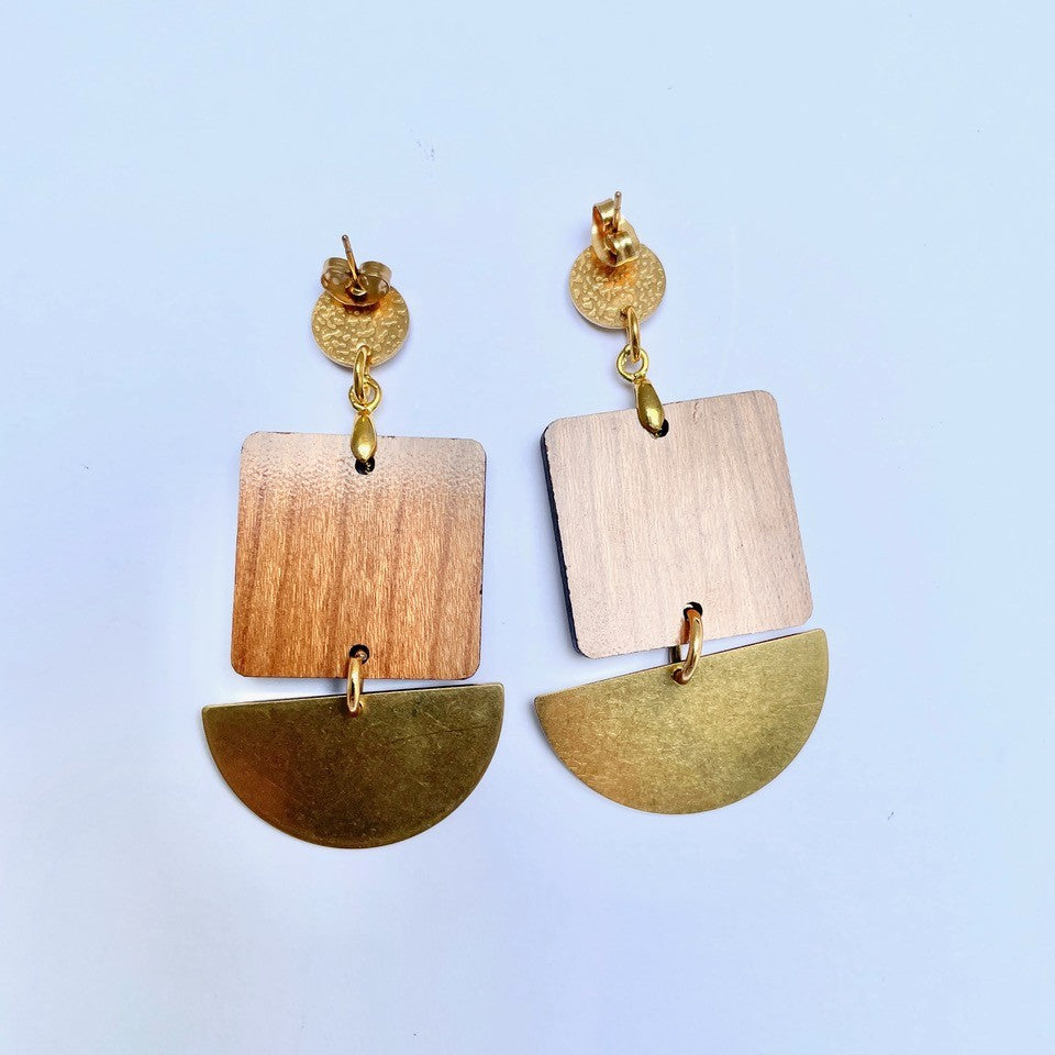 Golden Brass and Cherry Wood Engraved Earrings by Mothú