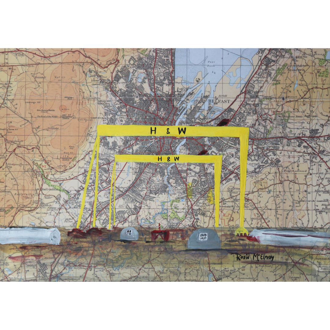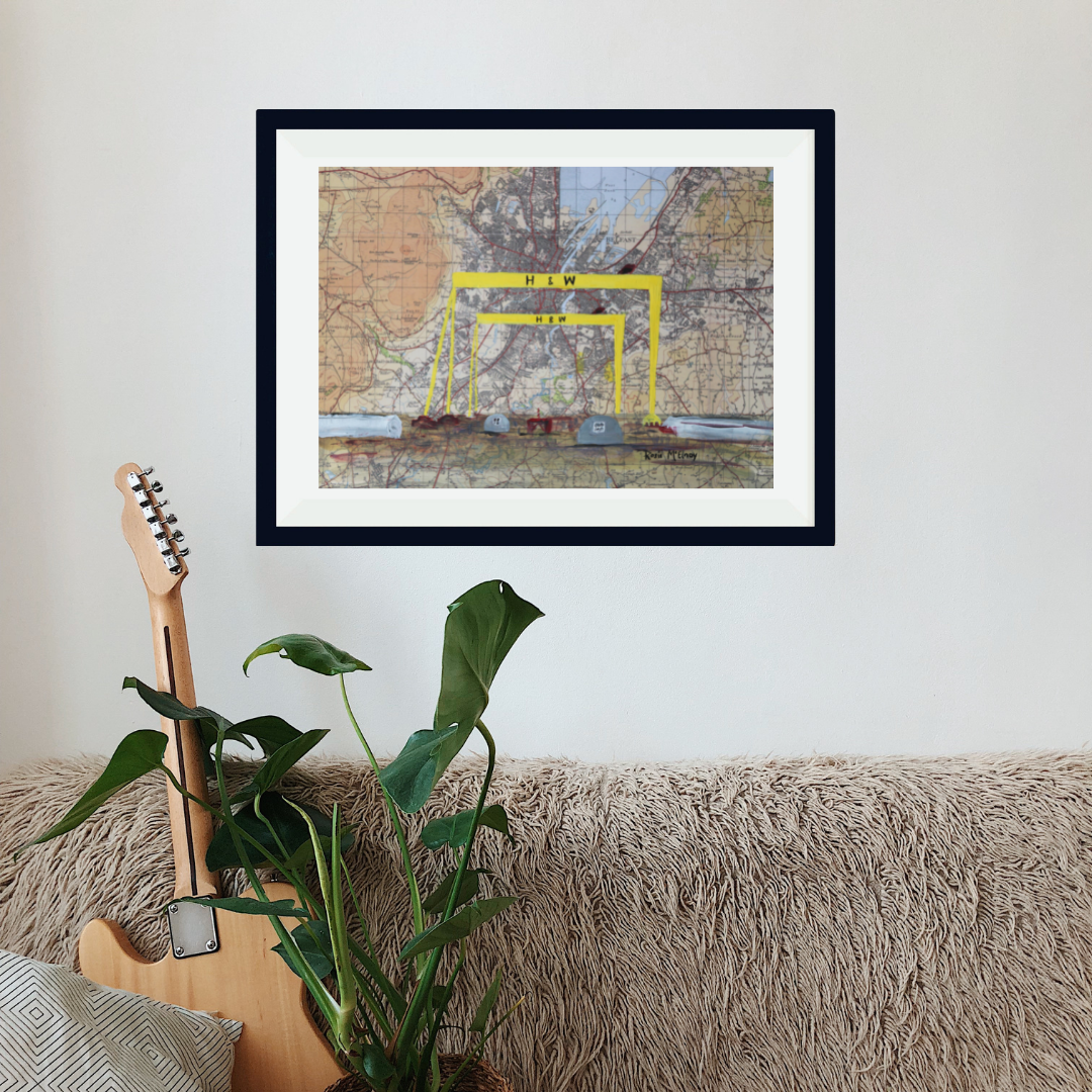 Rosie’s Easel created the original painting with acrylic paints using a map of the local area as the canvas. The print is available in two sizes so you can find the perfect spot for your new piece of art. Both the medium and large prints come with a crisp white mount while a framed option is also available.