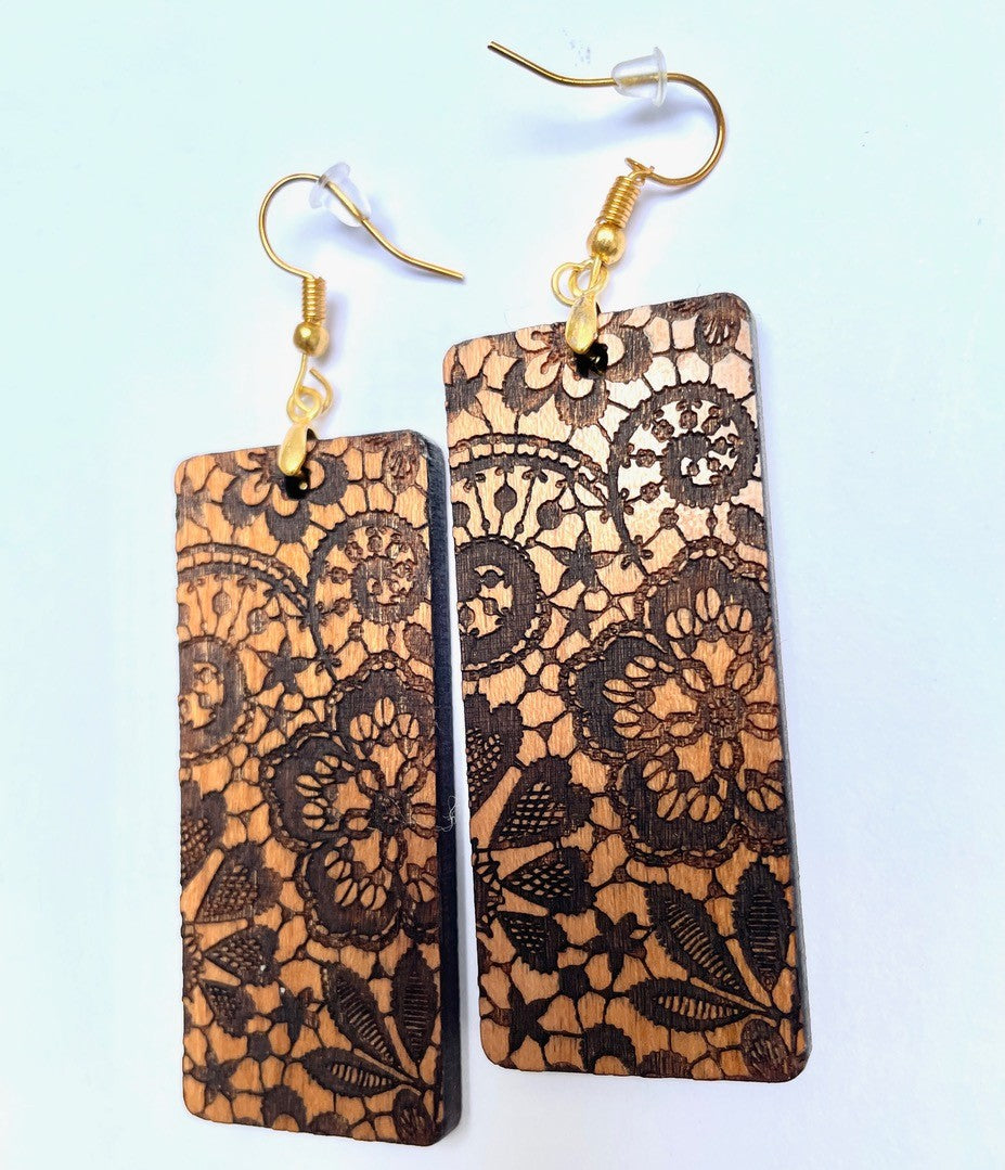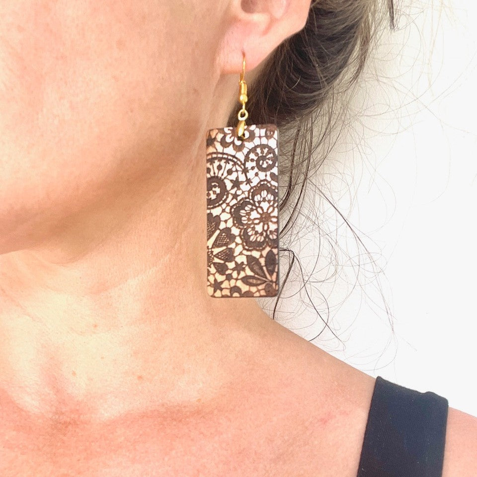 Irish Lace Rectangle Dangle Earrings by Mothú
