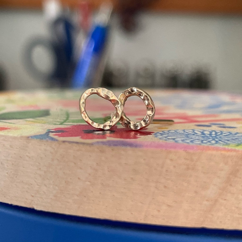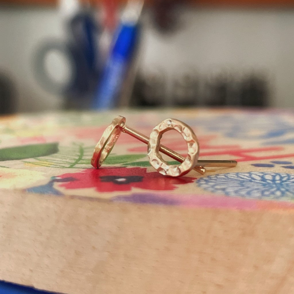 These delicate Ripple earrings from Ruth's collection ‘Raindrops and Ripples’, are handmade in 9ct gold. Measuring approx. 7mm x 7mm in diameter, they are small and dainty and can also be bought in a set with a matching necklace.