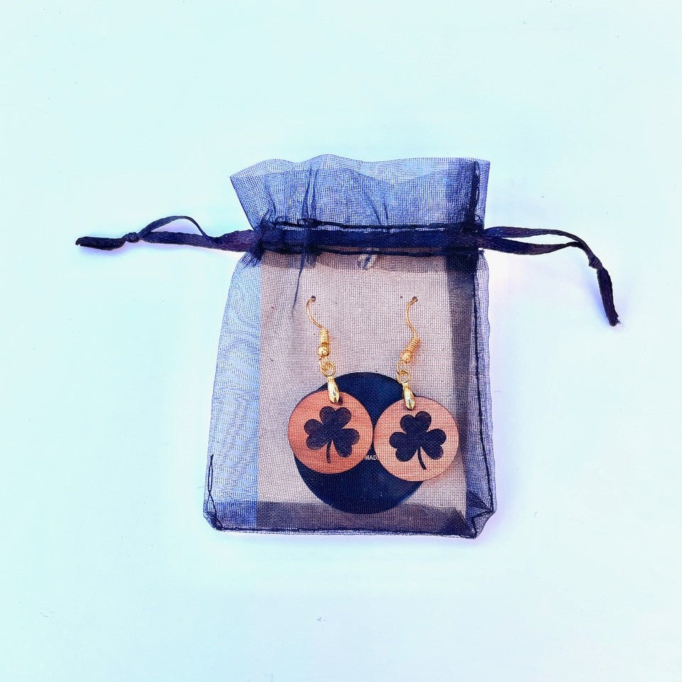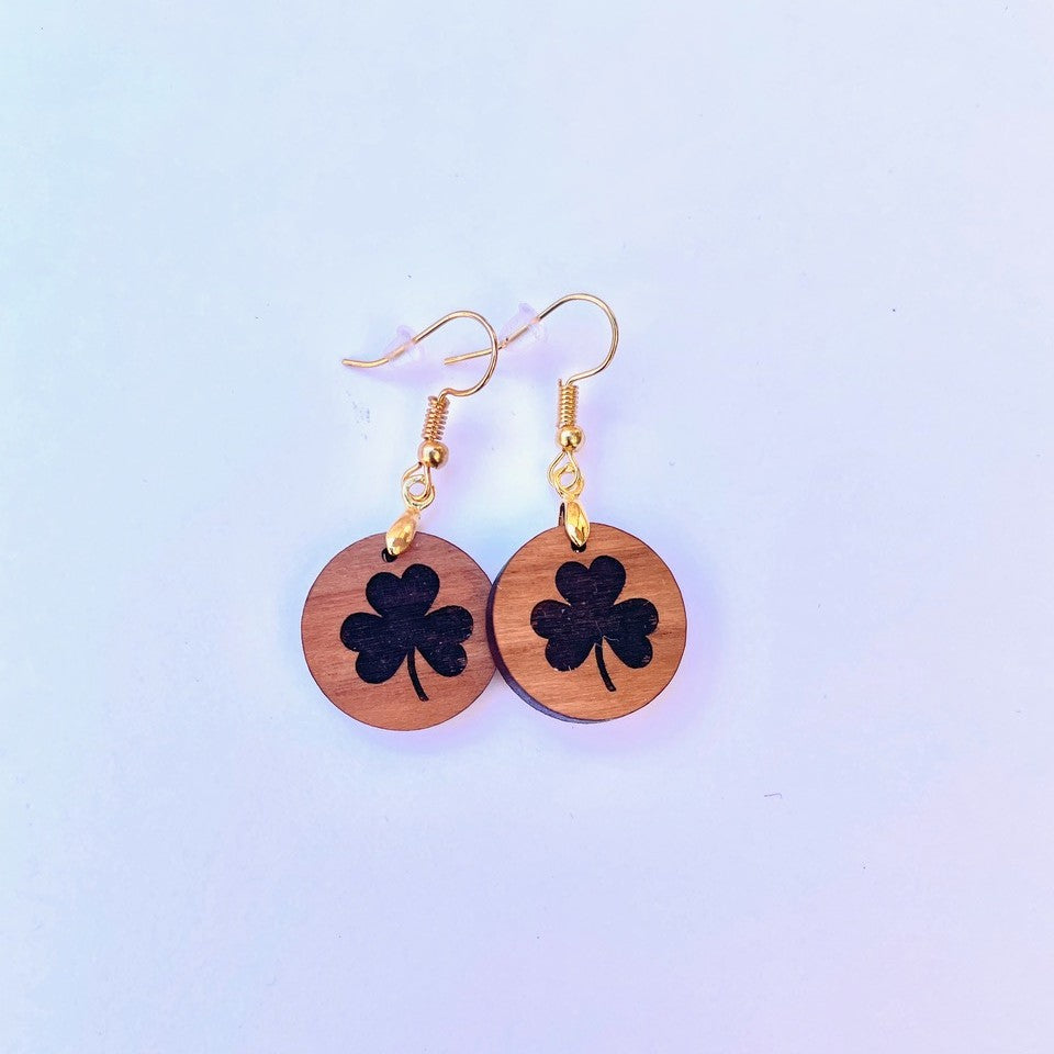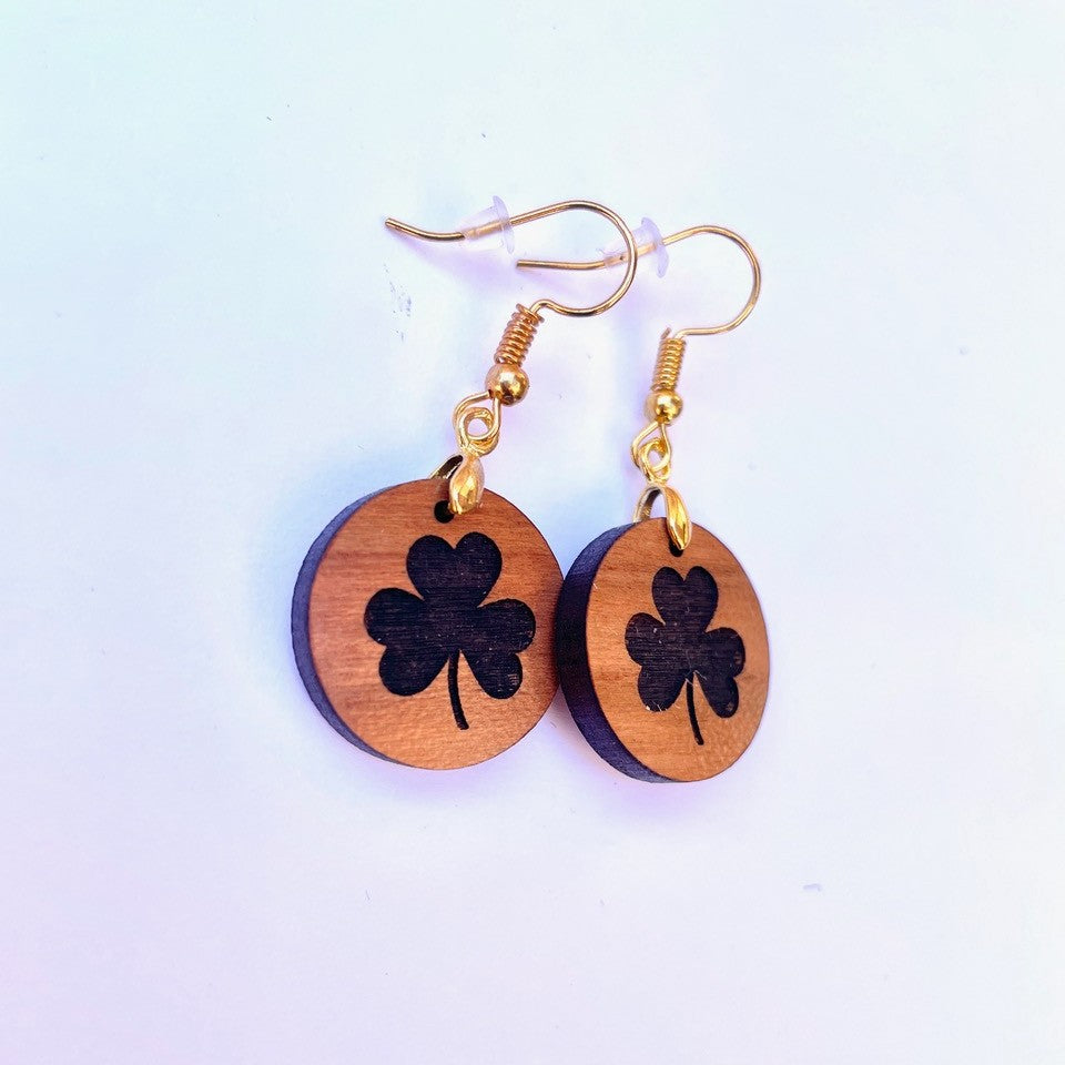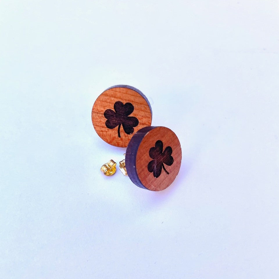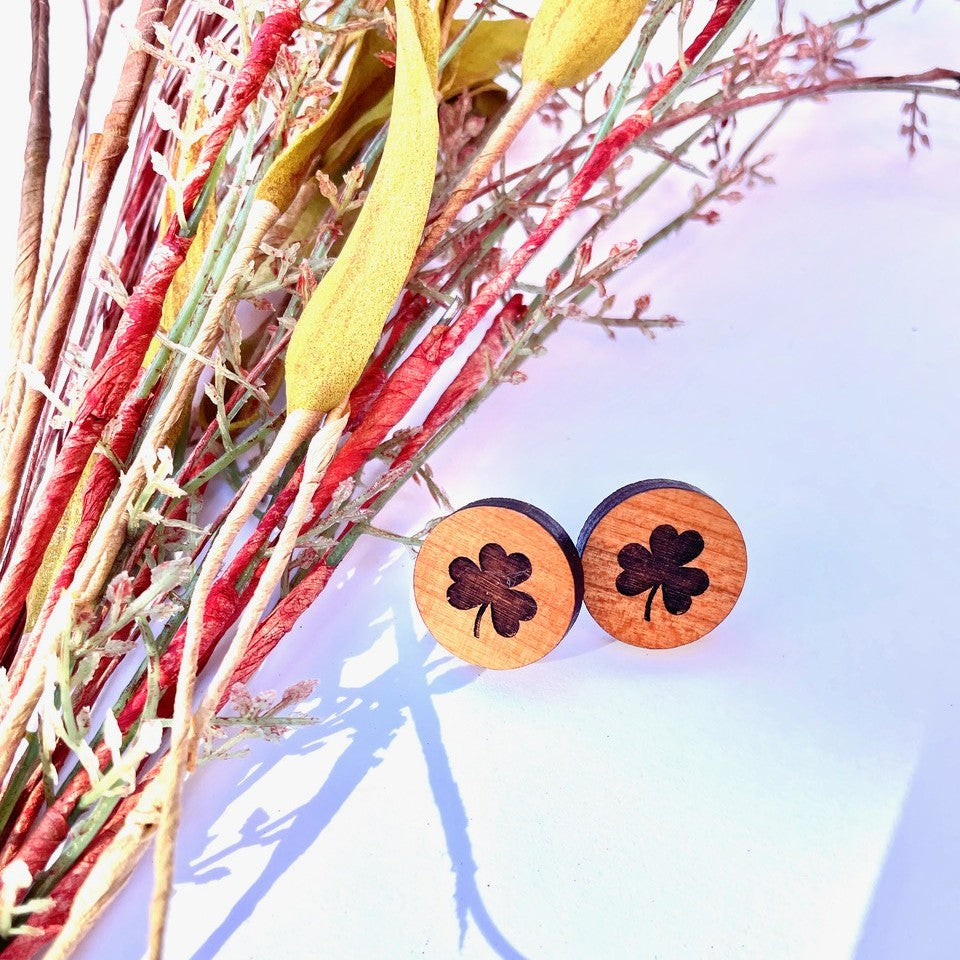 Made from cherry wood, these shamrock stud earrings are cute and stylish. Laser cut and engraved in Belfast, they are then hand-finished with ink.