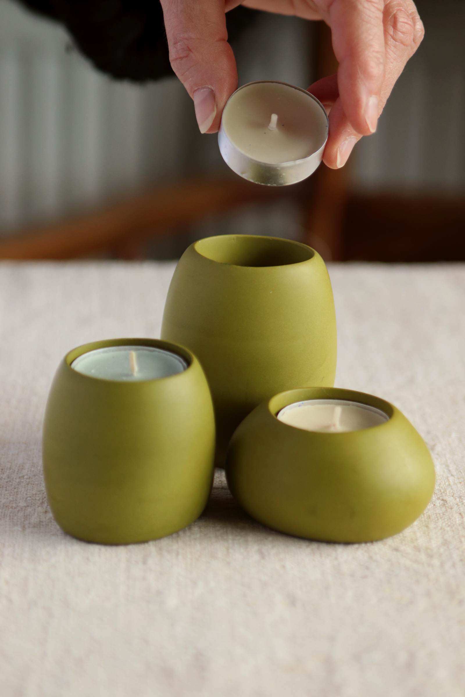 Tealight Holders Set, Olive Green Collection